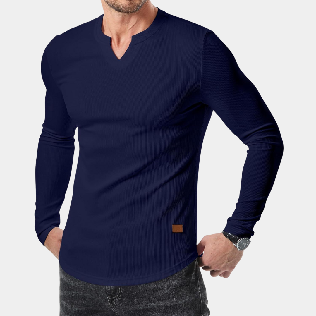 Progettata per valorizzare la linea maschile, questa maglia a maniche lunghe offre un profilo netto e un taglio preciso che segue armoniosamente ogni movimento. La piccola incisione sul colletto aggiunge un accento contemporaneo pur mantenendo una sobrietà raffinata, in perfetto stile Ruggeri Milano™.